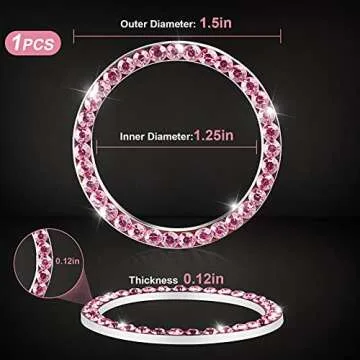Bling Car Decor Crystal Rhinestone Ring Emblem Sticker, Bling Car Accessories for Women, Car Interior Decoration, Push to Start Button, Key Ignition Starter & Knob Ring,Car Decor Accessory (Pink) …