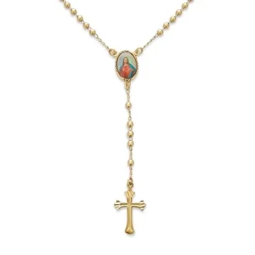 Show moreIntroducing the exquisite Bling Jewelry Catholic Christian Prayer Rosario Beads Necklace, a thoughtfully crafted piece that beautifully encapsulates faith and elegance. Made with precision, this stunning necklace features a brilliantly designed oval medal depicting the Scared Heart of Jesus, alongside a graceful Fleur de Lis cross. Each element of this necklace is designed to resonate with those who cherish spiritual expressions through fashion. Crafted from high-quality 18K gold plated brass, this piece not only boasts a stunning appearance but is also hypoallergenic, free from lead and nickel, ensuring comfort for sensitive skin. The necklace measures 16 inches in length, adorned with 3.5mm beads and a 4-inch medallion pendant, striking the perfect balance between elegance and meaning. Whether you are expressing your devotion or looking for a unique gift, this necklace is designed to touch hearts and elevate spirits.