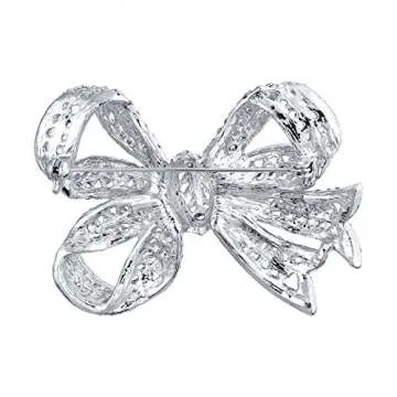 Show more Elevate your style with our exquisite Vintage Bow Ribbon Brooch Pin, perfect for adding a touch of feminine glamour to your formal and casual outfits. Crafted with meticulous attention to detail, this stunning accessory features pave crystal embellishments that radiate sparkling shine, making it an eye-catching addition to any ensemble. Measuring at 2 inches long and 2.5 inches wide, and weighing only 33.6 grams, it's designed to be lightweight yet striking enough to make a statement. Whether you wear it on a jacket, blouse, sweater, scarf, or even a hat or bag, this brooch is sure to enhance your favorite garments and accessories.