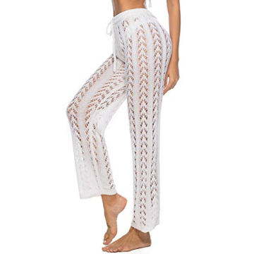 Blingfit Women's Wide Leg Crochet Pants With Drawstring Tie Casual White Pants Cover Up
