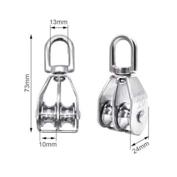 BlingKingdom 2pcs M20 Double Pulley Block 360° Spin Freely 304 Stainless Steel Double Pulley Wheel Roller Strong for Block and Tackle Pulley System Used to Lift Kayaks Max Load: 75kg
