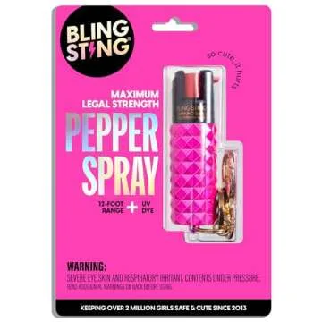 Show moreIntroducing the Blingsting Pepper Spray Keychain for Women in a stunning pink hue, designed not just for safety but to also complement your style. This compact self-defense tool is a perfect blend of fashion and functionality, ensuring that you feel empowered and safe no matter where you go. With a powerful formulation featuring 1.4% Major Capsaicinoids, this pepper spray is lab-tested for maximum strength, providing you with a reliable line of defense that can help protect you in any situation. Its long-range defense capabilities can reach attackers from up to 12 feet away, offering you significant distance and peace of mind. The integrated UV dye serves an additional purpose by marking attackers, allowing for easy identification by law enforcement after an incident.