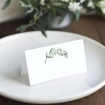 Bliss Collections Greenery Place Cards for Wedding or Party, Seating Place Cards for Tables, Scored for Easy Folding, 50 Pack, 2 x 3.5 Inches