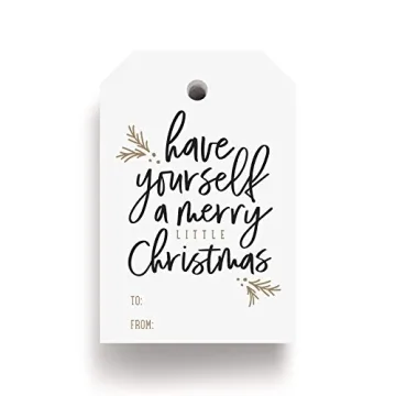 Bliss Collections Merry Little Christmas Tags, Pack of 50, Gold and Black, Holiday ’Tis The Season Events, Parties and Celebrations - Great for Seasonal Favors