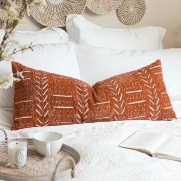 BlissBlush Brick Red Boho Lumbar Pillow Cover - Stylish & Soft