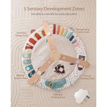 Show more The ultimate growth companion for your little one, this delightful baby play gym is designed to foster exploration and learning through play. With its five carefully curated developmental zones—Focus Learning, Touching, Recognizing Colors, Hearing, Hiding & Finding Zones—it empowers your baby's sensory and cognitive development from day one!