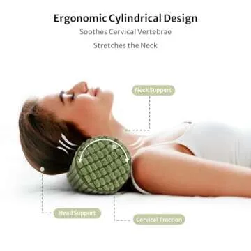 Blissful Diary Neck Pillow for Sleeping, Memory Foam Plush Dot Washable Cervical Neck Pillow for Neck Pain Relief, Multi-functional Home Office Travel Yoga Round Cylinder Bolster Pillow, Stylish Green