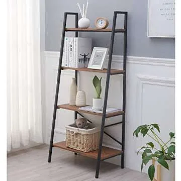 Blissun Ladder Shelf, 4-Tier Bookshelf, Storage Rack Shelf for Office, Bathroom, Living Room, Hazelnut Brown