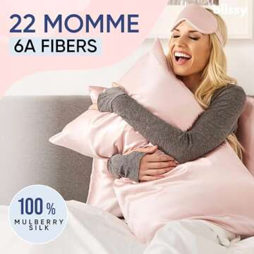 Show more Experience the ultimate in luxury and comfort with the Blissy Silk Pillowcase, crafted from 22 Momme 100% Pure Mulberry Silk. This exquisite pillowcase is designed to transform your sleep experience, offering unmatched quality that soothes both your skin and hair. Each pillowcase is handmade, ensuring that you receive a product that not only looks beautiful but also functions seamlessly. No more waking up to frizzy, tangled hair or irritated skin; the smooth, soft surface of the Blissy pillowcase will help you achieve fresh, vibrant mornings!