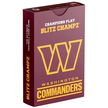 Show more Introducing the Blitz Champz Washington Commanders Card Game, an officially licensed NFL card game that features the unique blend of strategy, fun, and a shared love for football! Proudly made in the USA, this game brings together family and friends as they dive into the thrilling world of football. Designed for 2 to 6 players, it's ideal for casual family game nights, tailgate parties, or any gathering where competition and laughter are welcome. With 100 beautifully illustrated cards showcasing male and female tackle and flag football players, players will not only feel the excitement of the game but also engage in some math practice while they're at it!