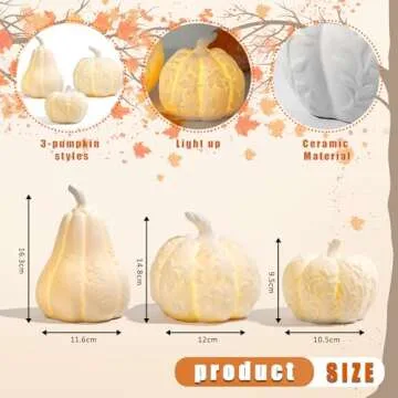 Blivergowell Set of 3 Large Ceramic Pumpkin with Light, Thanksgiving Table Decorations Decorative White Pumpkins Fall Centerpiece Table Decorations for Home