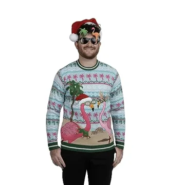 Show moreStep into the holiday season with a splash of humor and style in the Blizzard Bay Men's Ugly Christmas Sweater Santa, Flamingo Blue. This vibrant and festive sweater combines the traditional charm of Christmas attire with a unique beachy twist, featuring playful graphics that will have everyone at your party smiling. Made from 100% acrylic, this sweater is designed not only to keep you warm but also to ensure a comfortable fit while you celebrate the season. The soft fabric feels luxurious against your skin, making it perfect for all-day wear, whether you're enjoying festive gatherings or cozying up by the fire. With its lightweight knit, it's a versatile option that allows comfortable movement, making it an easy choice for any holiday occasion.