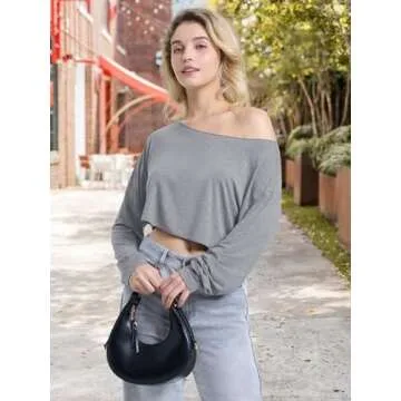 Blocac Off Shoulder Crop Top - Trendy Workout and Casual Long Sleeve Tee