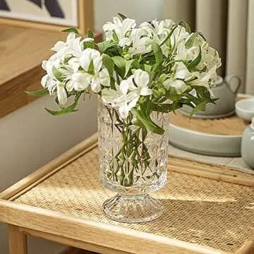BLOFLO Embossed Glass Vase, 7'' Crystal Glass Vases for Flowers, Pedestal Big Base Glass Bouquet Vase, Hydroponic Glass Transparent Vase for Home Office Wedding Dining Table Party