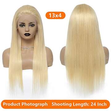 Show moreIntroducing the **Blonde 613 Lace Front Wig**, a luxurious and stunning addition to your hair collection, meticulously crafted from 100% Brazilian virgin human hair. This 20-inch wig boasts a **13x4 frontal design**, offering versatile styling options while ensuring a natural-looking hairline. With a remarkable **150% density**, this wig delivers full-bodied volume that exudes elegance. The gorgeous blonde color adds a radiant glow, making it the perfect choice for fashion-forward individuals looking to elevate their look.