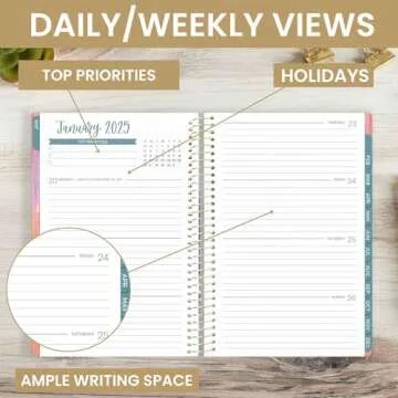 Every planner comes packed with bonus life coaching worksheets, designed to help set and achieve personal goals throughout the year. From creating a personal mission statement to tracking habits and expenses, this planner is a versatile tool for anyone looking to elevate their organization skills and vision for the future. Features like the front and back inside storage pockets, deluxe metal lay-flat spiral binding, and a FREE sticker sheet and bookmark add a touch of personalization and convenience, making it accessible and user-friendly.