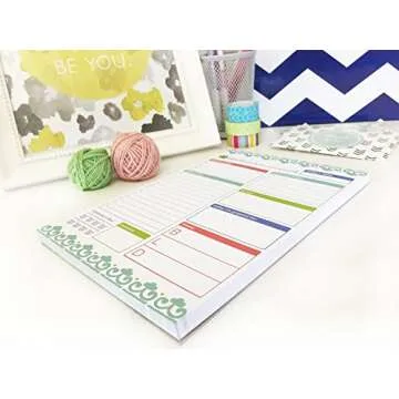 The planner pad measures 6" wide by 9" tall and is 0.4" thick.