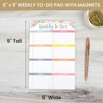 bloom daily planners Undated Weekly Tear-Off To Do List Planning Pad with Magnets - Hanging Notepad Organizer for Fridge - 6” x 9” - Floral Dots