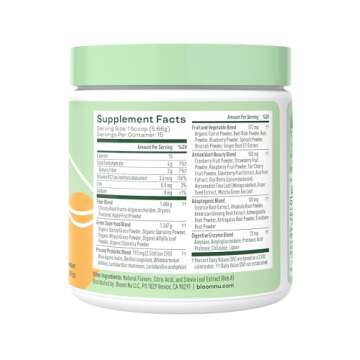 Show moreIntroducing the Bloom Nutrition Superfood Greens Powder: your new go-to daily supplement crafted to elevate your wellness journey! With over 30 carefully curated ingredients, this greens powder is designed to support your gut health, boost energy, and help reduce bloating. Infused with an array of prebiotics, probiotics, antioxidants, adaptogens, digestive enzymes, and organic superfoods like spirulina and chlorella, this delicious drink mix allows you to incorporate the goodness of fruits and vegetables effortlessly into your diet. Whether you're looking to energize your mornings or simply maintain a healthy lifestyle, Bloom Nutrition ensures you can bloom into your best self with every scoop.