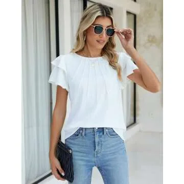 Blooming Jelly Women Dressy Casual Tops Business Work Blouses Summer Shirts Short Sleeve Crew Neck Outfits 2025(X-Large, White)