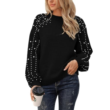 What sets this sweater apart is its exquisite pearl embellishments that radiate a touch of sophistication, providing an instant upgrade to your ensemble. Perfect for a variety of occasions, whether you attend a festive party, class at school, or even a professional meeting at the office, you’ll revel in the stylish comfort this piece delivers. You will appreciate its loose fit, designed to flatter all body shapes while avoiding any added bulk. This design makes it perfect for both laid-back weekends or when you're aiming for a dressy appearance in the evening.