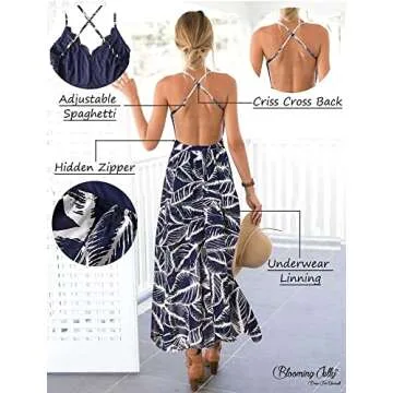 Show moreThis exquisite Blooming Jelly Women's Deep V Neck Sleeveless Summer Asymmetrical Floral Maxi Dress is your perfect companion for various occasions, be it summer weddings, casual outdoor events, or elegant evening parties. Crafted from high-quality chiffon and lace, the dress effortlessly combines comfort with sophistication. The deep V-neck design and open back make it not only stylish but also an excellent choice for those warm summer days. With adjustable spaghetti crisscross straps and a stunning wrap irregular hem, this dress flatters your figure while offering a breezy flair. Embrace the summer sun in a garment that's both sexy and chic, turning heads wherever you go.