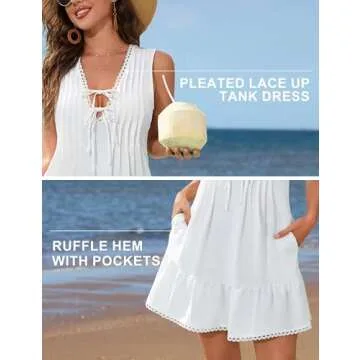 Blooming Jelly Womens Bathing Suit Cover Up Pleated Lace Up Swim Beach Dress Flower Trim Swimsuit Coverup with Pockets(Hot Pink,L)