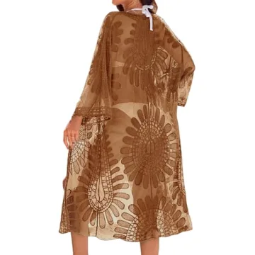 Show more Introducing the exquisite Blooming Jelly Women's Bathing Suit Cover Up, a must-have piece for your summer wardrobe designed for the modern woman who wants to radiate confidence and elegance while soaking up the sun. This stunning cover-up features a mesmerizing long floral lace design that is lightweight and breezy, made from soft mesh material that feels luxurious against your skin. Perfect for those long days spent at the beach or by the pool, the 3/4-length sleeves and delicate lace detailing accentuate the feminine silhouette while providing coverage and comfort. With its cascading open front, this piece offers a truly versatile addition to any outfit, seamlessly transitioning from swimwear to casual daytime wear.