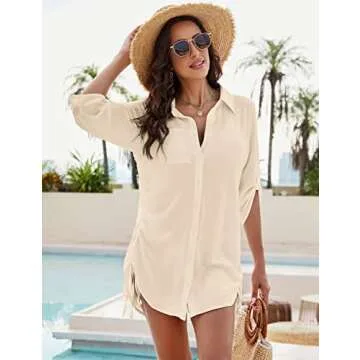 Blooming Jelly Womens Bathing Suit Cover Ups Bikini Swimsuit Coverup Drawstring Button Down Beach Dress Shirt(Large, Apricot)