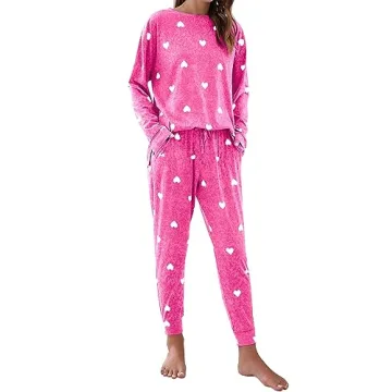 Blooming Jelly Women’s Cute Pajama Sets with Drawstring, Heart Print, Pockets