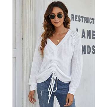 Blooming Jelly Womens Off Shoulder Sweaters Oversized V Neck Shirts Long Sleeve Ruched Knit Pullover Tops