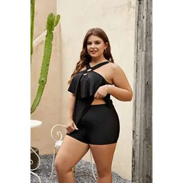 Blooming Jelly Womens Plus Size Swimsuit Two Piece Tankini Bathing Suits Maternity Swimsuit Tummy Control Swimwear(3X-Large,Black)