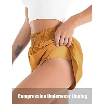 Blooming Jelly Womens Quick-Dry Running Shorts Sport Layer Elastic Waist Active Workout Shorts with Pockets 1.75" (Medium, Mustard)