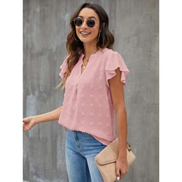Blooming Jelly Womens White Blouse V Neck Ruffle Sleeve Flowy Shirts Dressy Casual Cute Summer Tops(X-Largr, Dusty Rose)