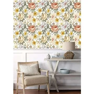 Blooming Wall Multicolor Peony Daisy Peel and Stick Wallpaper Self Adhesive Wall Mural Wall Decor, 14.5 Square Ft/Roll