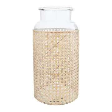 Show moreIntroducing the stunning Bloomingville 14.5"H Glass Vase with Decorative Cane Sleeve in Beige, a captivating addition to any home decor. This elegant vase not only serves as a beautiful container for your favorite flowers or botanicals but also doubles as a chic decorative piece. Its perfect dimensions of 6.75 inches by 6.75 inches provide ample space for a variety of arrangements, while the unique cane sleeve adds a touch of sophistication and warmth. Ideal for adding charm to a sunroom or complementing a tropical decor style, this vase is truly versatile. Whether you're hosting friends or enjoying a quiet evening at home, this vase will draw the eye and elevate your space.