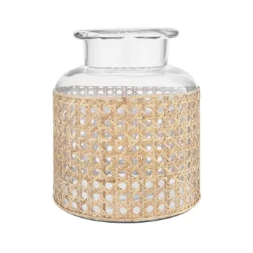 Bloomingville 8"H Glass Vase with Decorative Cane Sleeve