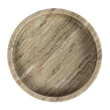 The marble dish typically features a natural beige tone, with unique veining patterns that may vary.