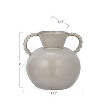 Bloomingville 9.25 Inches Stoneware Vase with Twisted Handles and Reactive Glaze, Cream Color