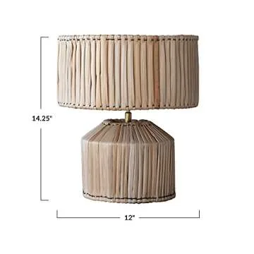 Bloomingville Banana Leaf Table, Hand Woven Lamp, Natural