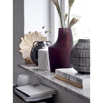 Artfully designed debossed stoneware vase has a modish vibe that will complement many different home settings