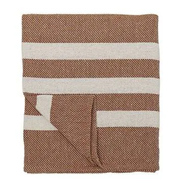 Bloomingville Knit Rust with White Stripe Cotton Throw, Cozy Comfort in Every Stitch