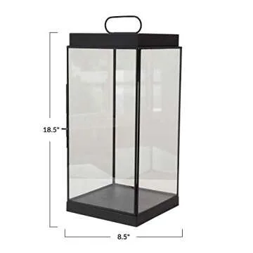 Show moreIntroducing our beautifully crafted metal and glass lantern that brings elegance and charm to any setting. This stunning piece features a classic matte black finish that enhances its timeless appeal. Measuring 8.5 inches square and standing 18.5 inches tall, it serves not just as decor, but as an inviting source of light for your home. The clear glass panels allow for a glowing softness, casting delightful shadows within the room, making it a perfect fit for both modern and contemporary styles.