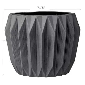 Bloomingville Modern Stoneware Fluted Planter, Matte Grey 8 Inch x 6 Inch