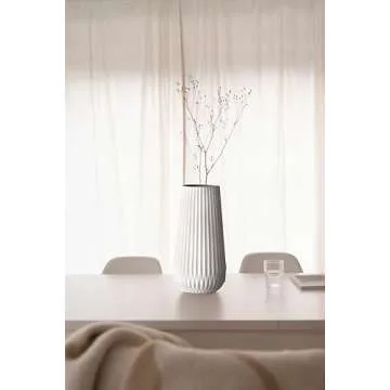 Elegant Bloomingville Tall White Ceramic Fluted Vase - Modern Home Decor