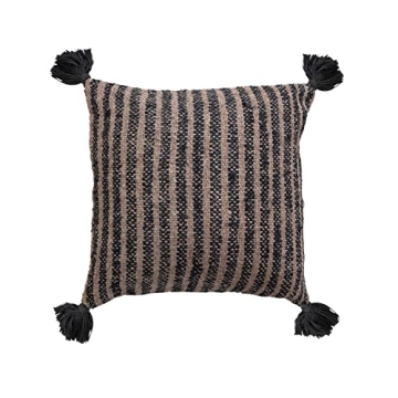 Bloomingville Woven Cotton Stripes and Tassels Pillow - 18" x 18" - Stunning Black and Tan Design
