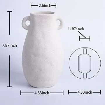 BlossoME Ceramic White Vase Neutral Tone Greek Pottery for Home Shelf and Side Table Decor Rustic and Vintage Gift 8”