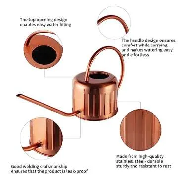 BLstyle 34oz Copper Watering Can-Small Watering Can for House Plants, Metal Watering Can with Long Spout, Indoor and Outdoor Watering Can, Flower Watering Can, Plant Watering can, Bonsai Watering can