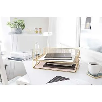 Show more Transform your workspace with this elegantly designed two-tier desktop organizer that offers both style and practicality. Crafted by a leading brand in office supplies, this stackable letter tray set is perfect for keeping your documents, files, and important paperwork neatly arranged. Made from solid steel and featuring a refined metal mesh design, this organizer not only serves its purpose but also enhances the aesthetic of your office, classroom, or home desk.