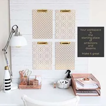 BLU MONACO Office Supplies Rose Gold Desk Accessories for Women-6 Piece Interlocking Stylish Desk Organizer Set- Pen Cup, 3 Accessory Trays, 2 Letter Trays-Rose Gold Paper Tray Holder